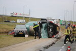 Cementwagen kantelt in Aalsmeer en duwt auto het water in, chauffeur opgepakt