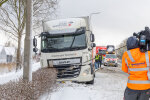Vrachtwagen van de weg door gladheid op N201 bij Vinkeveen
