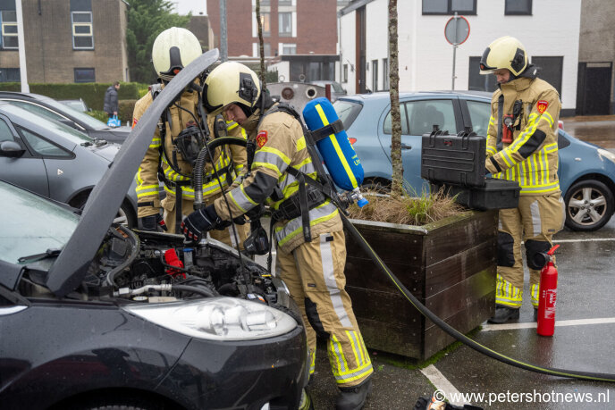 Een vrouw parkeerde de auto op het parkeerterrein aan de Kerkvaart toen het mis ging. De vrouw rook een brandlucht en opende de motorkap. Even later sloegen de vlammen uit de auto.