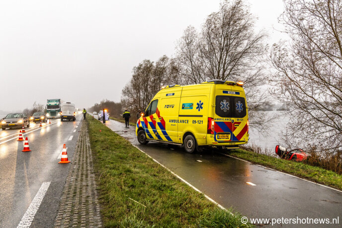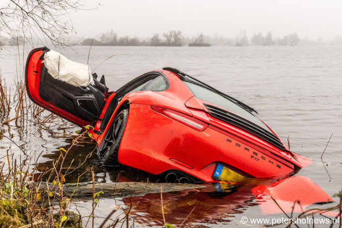 De bestuurder van een Porsche Carrera in vrijdagochtend met auto en al te water geraakt op de N201 bij Vinkeveen. Dit na een frontale botsing met een bestelbus van een pakketbezorger.