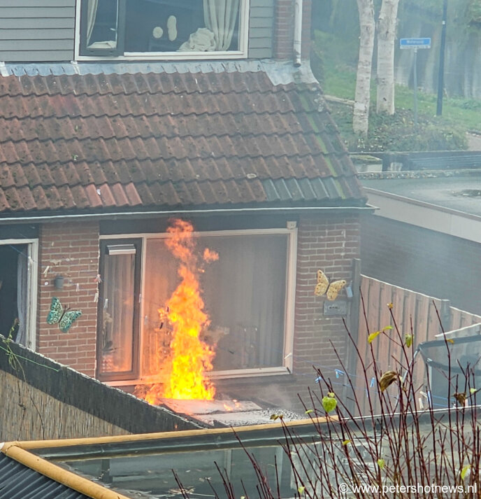 Er ontstond een grote vlammenzee in de tuin. De brandweer heeft vervolgens een nacontrole gedaan met blussen en gekeken of de woning gestut moet worden door de enorme knal.