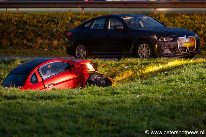Rond 07:30 uur kwamen een auto en brommobiel door nog onbekende oorzaak met elkaar in botsing. De brommobiel raakte daarbij te water. De bestuurder kon zelfstandig uitstappen en raakte niet gewond. Ook de automobilist kwam met de schrik vrij.