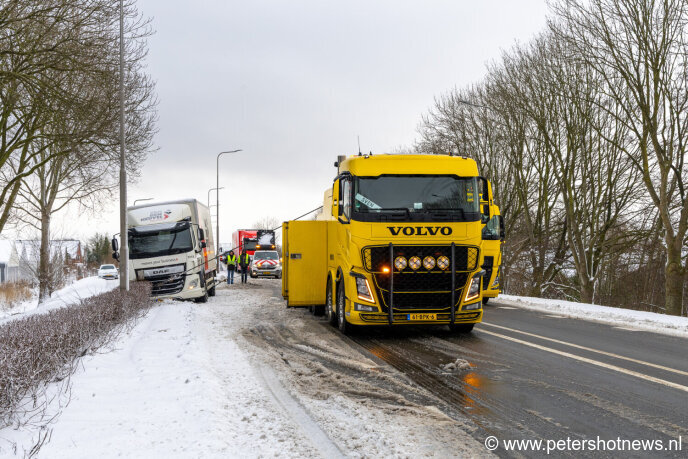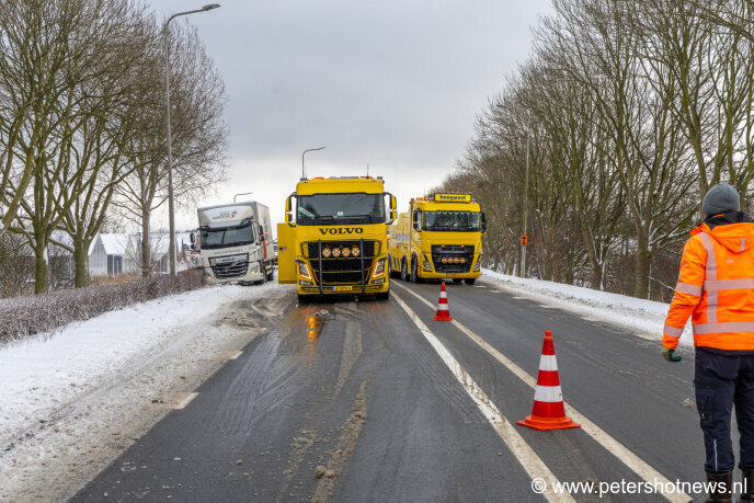 Vrachtwagen van de weg door gladheid op N201 bij Vinkeveen