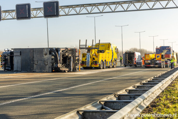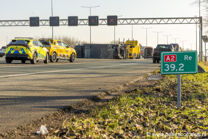 Vrachtwagen in 'sleep' gekanteld op A2 Abcoude