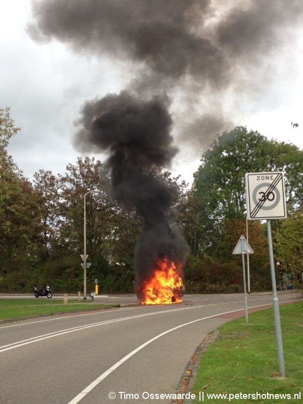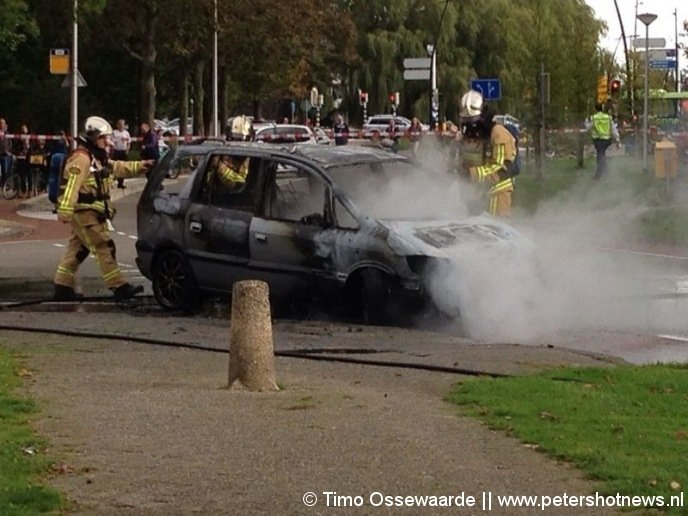 De auto stond volledig in brand toen de brandweer aankwam. De spuitgasten hadden het vuur uiteindelijk snel onder controle.