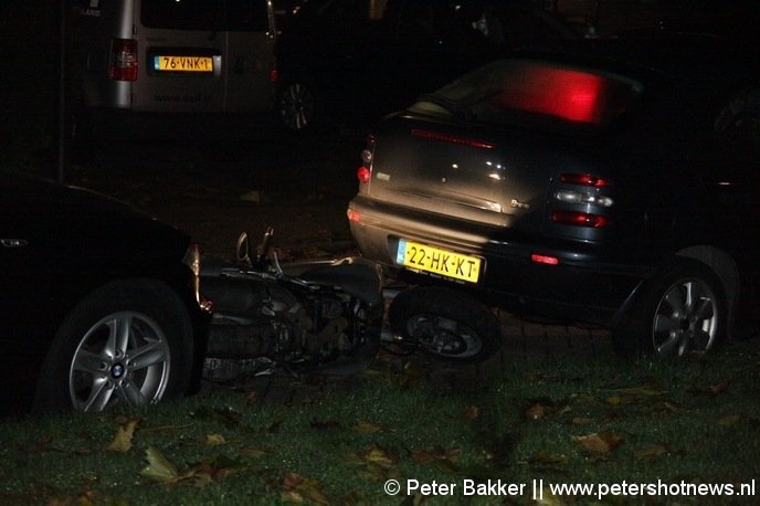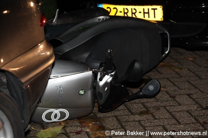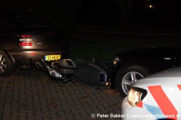 De 16-jarige bestuurder uit Mijdrecht reed met hoge snelheid door Mijdrecht en reed over de Dr van der Berglaan richting de Dr. van der Haarlaan. De scooterrijder reed ter hoogte van de Leeuwerik in een bocht het gras in en viel. De scooter kwam klem te zitten tussen twee geparkeerde auto's. De bestuurder zette het op een rennen. Een omstander en een agent hielden de verdachte uiteindelijk aan op de Grutto in Mijdrecht.