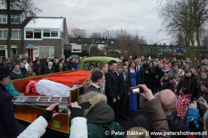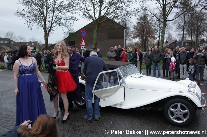 De leerlingen werden met vele bijzondere voertuigen naar school gebracht, van skateboard tot limousine.