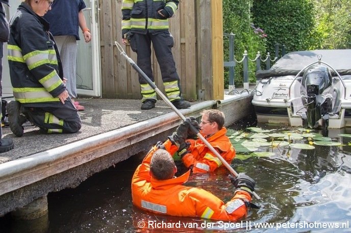De dierenambulance had een melding gekregen van een kat die in het water gevallen was en zich nu schuil hield onder een beton terras. Twee brandweermannen gingen te water en probeerden de kat te vangen. De kat liep uit angst steeds verder weg en kwam onder een steiger terecht. De kat had zelf een uitgang gevonden en houdt zich voorlopig in de wildernis schuil.