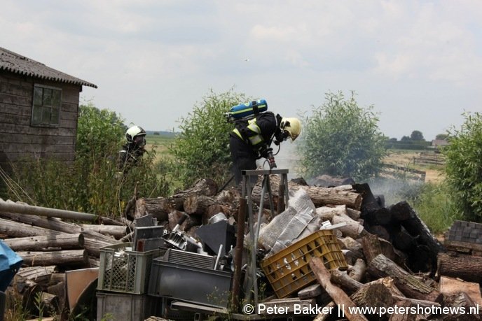 Eenmaal ter plaatse bleek er een buitenbrand te zijn naast een schuur. Er lagen stukken boom opgeslagen die door nog onbekende oorzaak vlam gevat hadden.