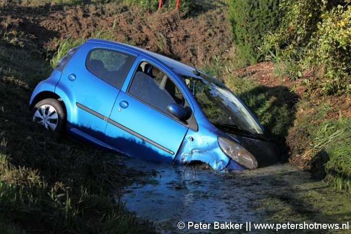 Mijdrecht - Dinsdagavond rond 20.00 uur werden de hulpdiensten gealarmeerd voor een auto te water.De kruising Hoofdweg met de Westerlandweg staat bekend om de vele ongelukken. Er zijn al meerdere gewonden gevallen op dit kruispunt door onder andere het slechte zicht en 's avonds vaak de laag staande zon.Een blauwe auto reed over de Hoofdweg vanuit Mijdrecht en werd geramt door een auto die vanaf de Westerlandweg richting Mijdrecht reed. De blauwe auto kwam door de klap tegen een verkeerspaal terecht en in de sloot. De andere auto liep lichte blikschade op. De bestuurder van de blauwe auto liep licht letsel op, hij kon ter plekke worden behandeld. Zijn hond raakte niet gewond. De bestuurder van de andere auto bleef ongedeerd.
