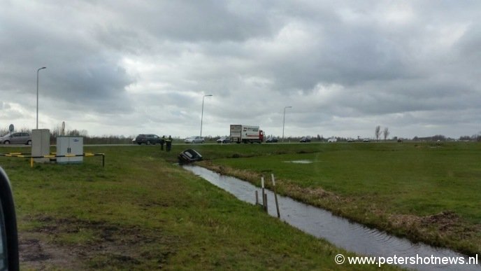 Wilnis - Een automobilist nam de rotonde van de N212 ter hoogte van de N401 donderdagavond waarschijnlijk iets te ruim. De auto kwam voor een deel in de sloot terecht en moest door een bergingsbedrijf weggetrokken worden. Het verkeer op de N212 had tijdens de berging een rijstrook minder ter beschikking waardoor er een korte file ontstond.