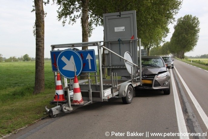 Wilnis - Dinsdagmorgen is een auto op een rijdende afzetting gebotst op de N212 ter hoogte van de Bovendijk.