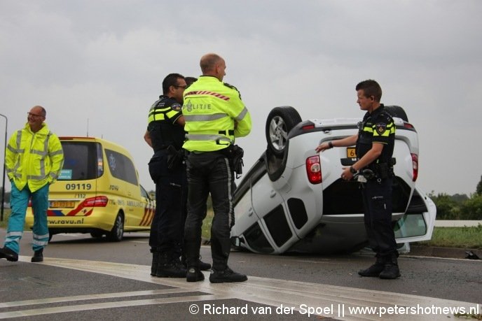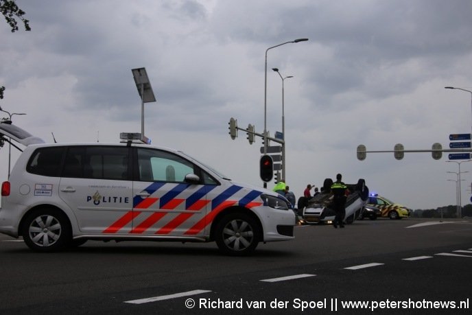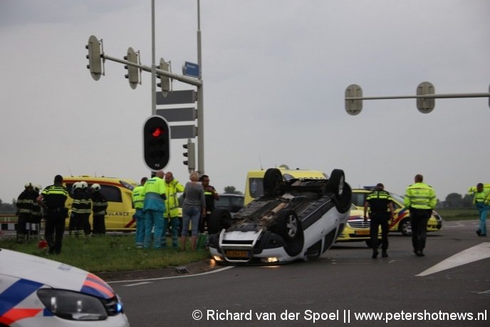 Waverveen - Bij de kruising van de N201 met de N212 is zondag aan het eind van de middag een auto op zijn kop beland na een aanrijding met een ambulance. De ambulance was met spoed onderweg naar een melding in Mijdrecht. De inzittende van de auto is ter plekke nagekeken door het ambulancepersoneel.