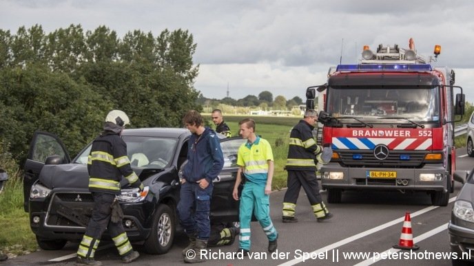 Bij aankomst bleek er een kop-staartbotsing te zijn. In de achterste auto zat nog een vrouw. De hulpdiensten besloten dat de vrouw onder begeleiding haar auto uit mocht stappen, waarna zij op de brancard werd gelegd. De brandweer hoefde de auto niet open te knippen.