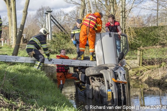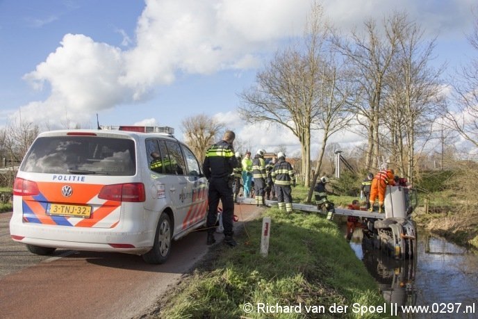 Donderdagmiddag is er een vrouw met auto en al het water ingereden langs de Rijksstraatweg in Baambrugge.