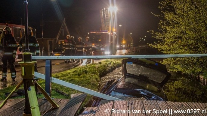 Auto te water en vast onder brug Wilnis