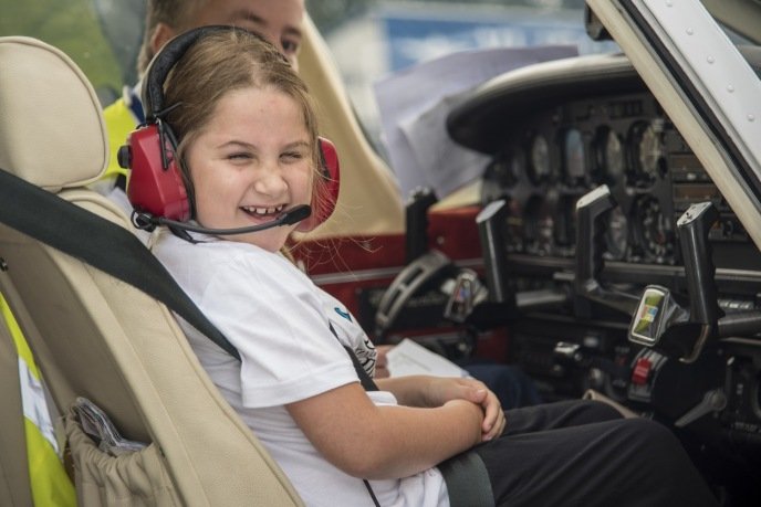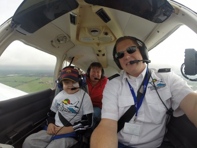 Zaterdag 17 september was het zover, ruim 40 kinderen uit De Ronde Venen, Woerden, Bodegraven en omgeving, waren uitgenodigd om een fantastische dag te beleven op vliegveld Hilversum. We waren te gast in de hangaar van Vliegschool Hilversum.