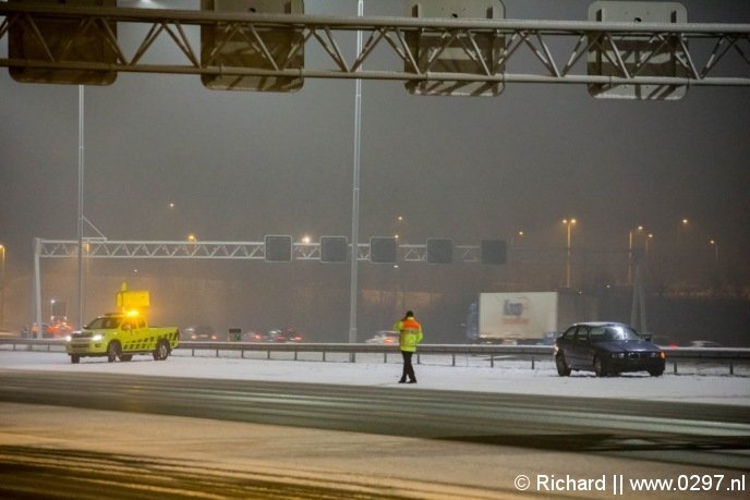 De sneeuwval van zaterdagavond heeft voor een klein ongelukje gezorgd op de A2 bij Abcoude.