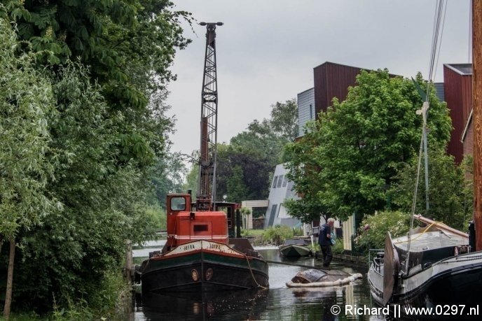 In een sloot achter de Herenweg in Vinkeveen is dinsdagmiddag een baggerschuit omgeslagen.