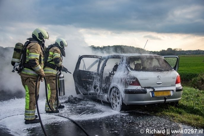 De brandweer heeft de auto geblust waarna hij is weggetakeld. De weg was tijdens de brand afgesloten.