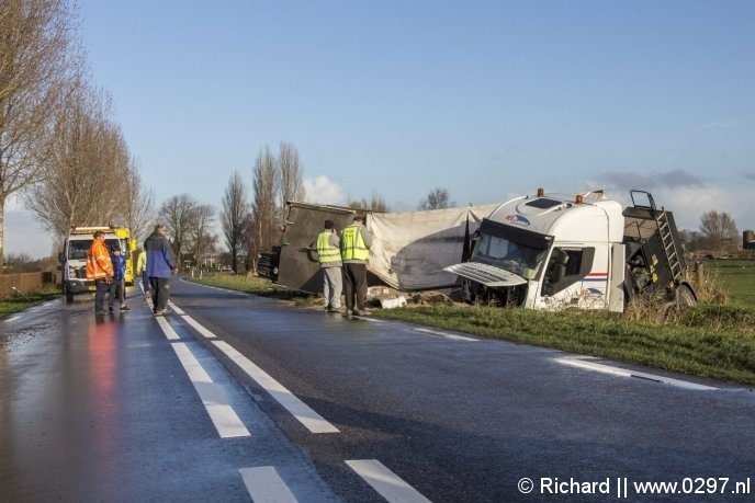 Twee vrachtwagens raakten te water. Geen van de bestuurders raakten gewond. Vanwege de bergingswerkzaamheden is de N231 tussen Kudelstaart en Noorden volledig afgesloten. Ook het verlengde, de Oude Spoorbaan bij De hoef, wordt afgesloten. Naar verwachting gaat dit nog de hele middag duren.