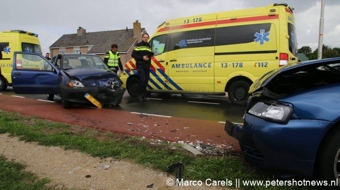 Twee auto's zijn zaterdagmiddag frontaal op elkaar gebotst op de Amsteldijk-Zuid in de buurt van Uithoorn.