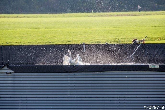 De brandweer heeft maandag drie zwanen uit twee waterbassins aan de Tuinderslaan in Mijdrecht gehaald.