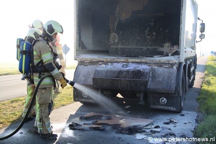 Zaterdagmorgen werd de brandweer gealarmeerd voor een brand in een vuilniswagen op de N201.