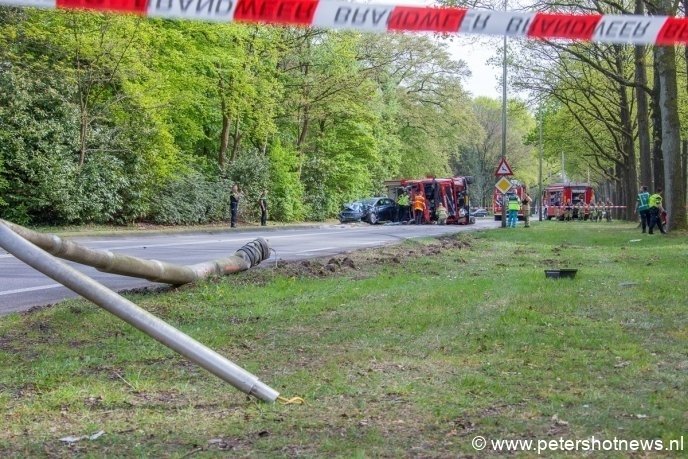 Brandweerwagen op z'n kant na ongeluk in Baarn