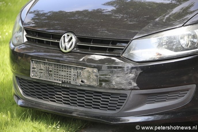 Een grijze auto reed over de Industrieweg en wilde afslaan de Nijverheidsweg op. Een auto die op de Nijverheidsweg stond reed de Industrieweg op en kwam in botsing met de afslaande auto. Beide auto's liepen blikschade op.