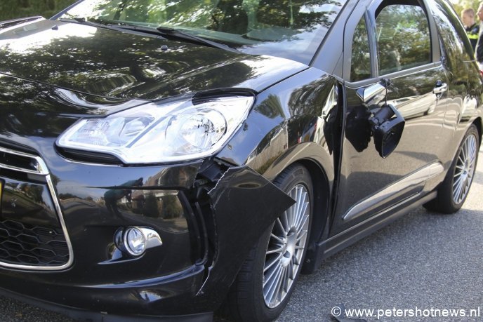 De fiets en auto liepen veel schade op. De bestuurder van de fiets liep geen letsel op.