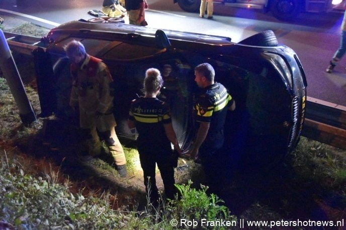 Het ongeluk gebeurde ter hoogte van de Legmeerdijk in Aalsmeer. Een auto belandde op zijn kant achter de vangrail. Politie, meerdere ambulances, een traumateam en de brandweer kwamen ter plaatse. Een persoon is door de brandweer uit het voertuig bevrijd. Het slachtoffer is met spoed met onbekend letsel naar een ziekenhuis vervoerd.