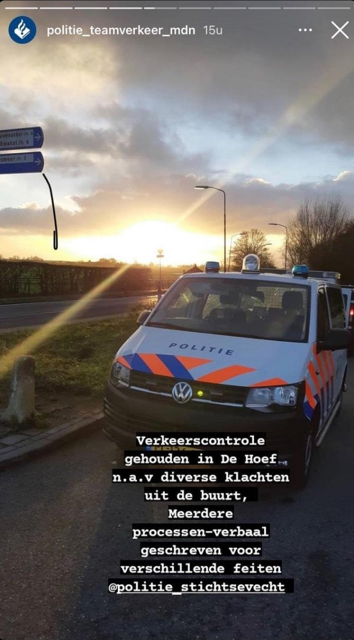 De politie heeft dinsdagmiddag een verkeerscontrole gehouden in de Hoef. Diverse weggebruikers zijn op de bon geslingerd.