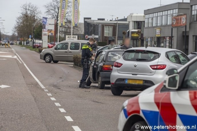 Het ongeluk gebeurde ter hoogte van de Karwei. Vermoedelijk voegde één van de bestuurders in op de Industrieweg toen het mis ging. De wagen werd geramd en de bestuurder raakte gewond. Voor het slachtoffer werd een ambulance gewaarschuwd.