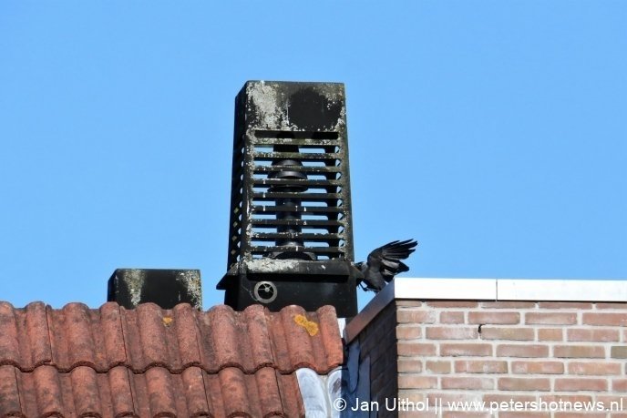 Maandagmorgen werden de brandweer van Uithoorn en Amstelveen gealarmeerd voor een kauw die vast zou zitten bij een schoorsteen aan de Fermoor in Uithoorn.