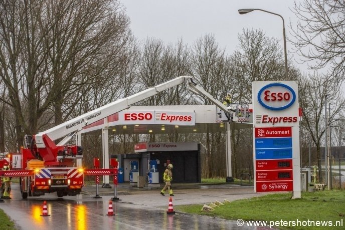 Brandweer in actie voor stormschade bij tankstation Amstelhoek