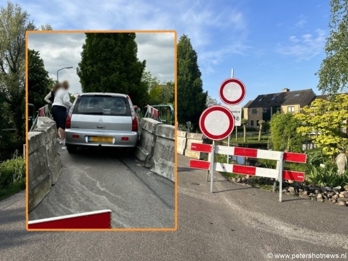 Eigenwijze automobilist rijdt zich vast op afgesloten brug
