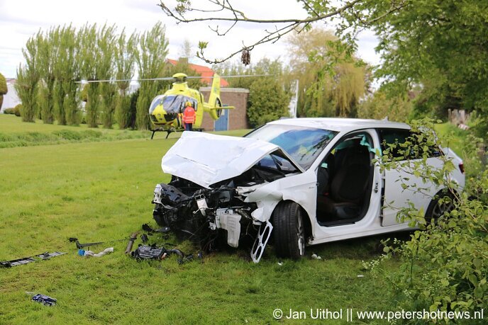 Bij een botsing tussen een auto en een bestelbus op de Legmeerdijk (N231) in Aalsmeer is vanmiddag zeker één iemand gewond geraakt. De auto is door de klap in een tuin naast de provinciale weg beland.