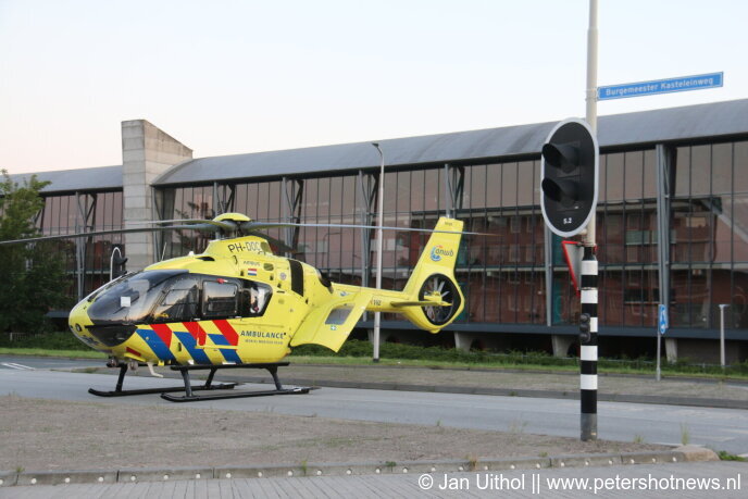 De oudere bewoner van de woning werd dinsdagavond onwel terwijl hij een pan op het vuur had staan. De brandweer forceerde de deur van de woning en bracht de man naar buiten om te reanimeren. Een traumahelikopter landde midden op de rotonde om bijstand te verlenen.