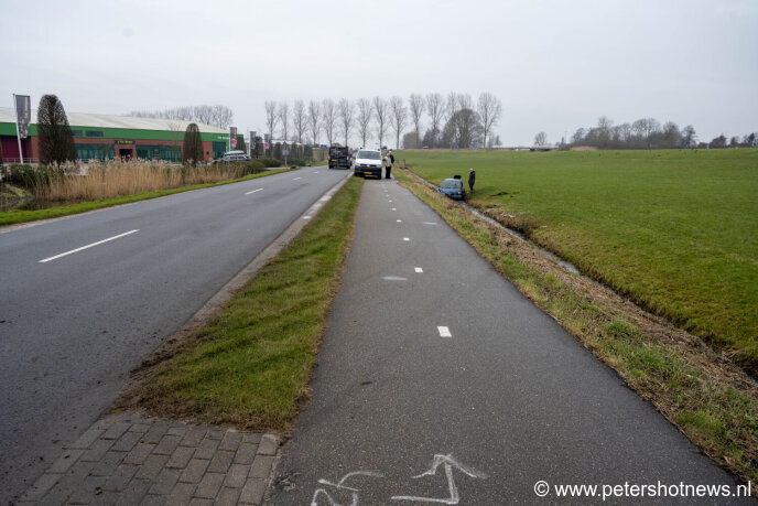 De vrouw reed richting De Hoef toen zij na een scherpe bocht de macht over het stuur verloor. De auto reed over het fietspad en sloeg vervolgens meermaals over de kop en kwam op beide wielen in een sloot tot stilstand.