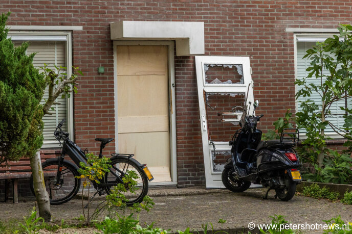 Waarschijnlijk is de voordeur in woonwijk l opgeblazen met zwaar vuurwerk, denkt de politie. Wie getuige is geweest van de explosie of videobeelden van de knal heeft, kan contact opnemen met de politie.