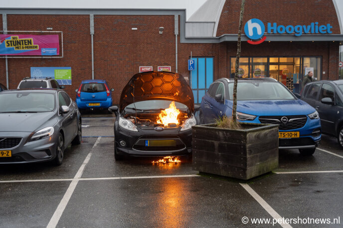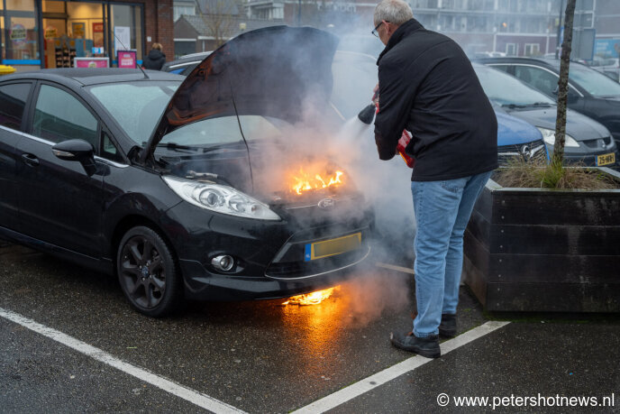 De brandweer werd gealarmeerd en omstanders hebben een brandblusser bij de Hoogvliet gehaald en de auto geblust.