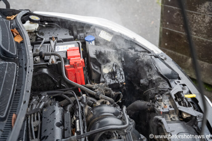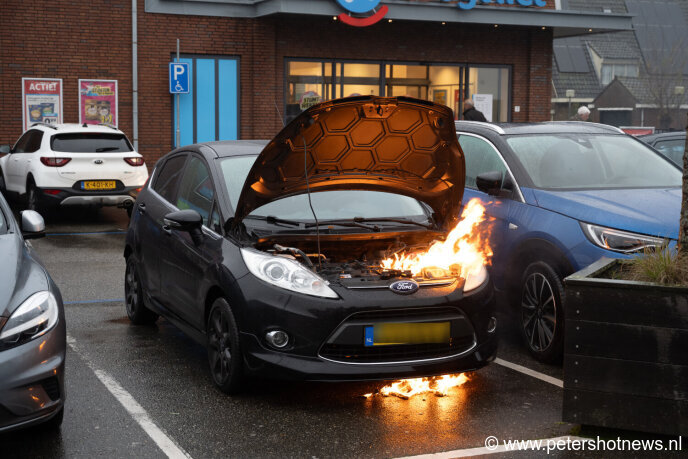 Een vrouw parkeerde de auto op het parkeerterrein aan de Kerkvaart toen het mis ging. De vrouw rook een brandlucht en opende de motorkap. Even later sloegen de vlammen uit de auto.