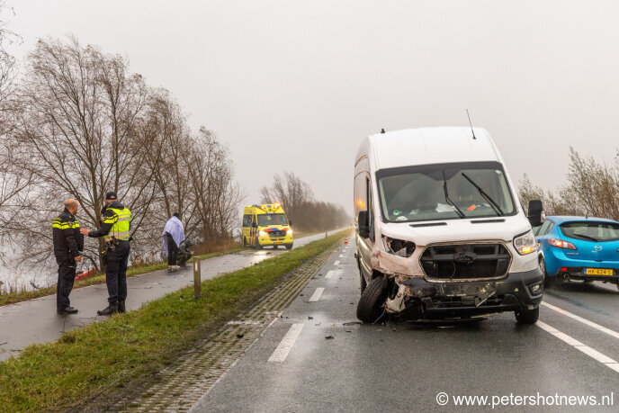 De bestuurder van een Porsche Carrera in vrijdagochtend met auto en al te water geraakt op de N201 bij Vinkeveen. Dit na een frontale botsing met een bestelbus van een pakketbezorger.