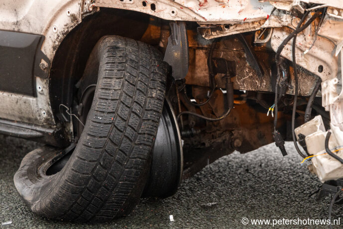 Het ongeluk gebeurde vrijdagochtend rond 08:30 uur. Alle inzittenden wisten zelfstandig uit het voertuig te komen. Één persoon is met de ambulance naar het ziekenhuis gebracht. Zijn letsel is onbekend.