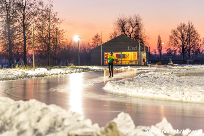 Rond 08.00 uur vanmorgen was er al één schaatsliefhebber op het ijs te vinden, maar een half uur later waren dat er al een handjevol. De ijsbaan is alleen open voor leden van de club. Geen lid? Geen probleem. Via de website kan je voor €12,50 het hele gezin lid maken en gebruikmaken van de ijsbaan.