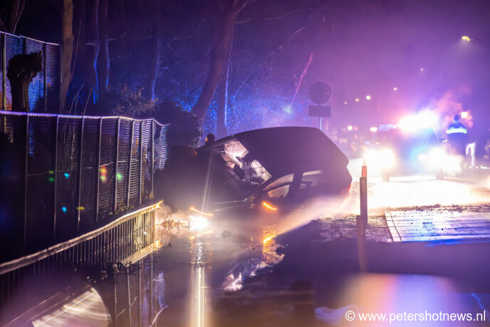 De inzittende wist zelfstandig uit de auto te komen en bleef ongedeerd. De politie doet onderzoek naar de toedracht van het ongeval.