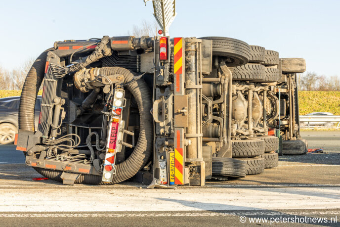 Vrachtwagen in 'sleep' gekanteld op A2 Abcoude
