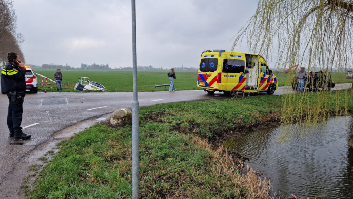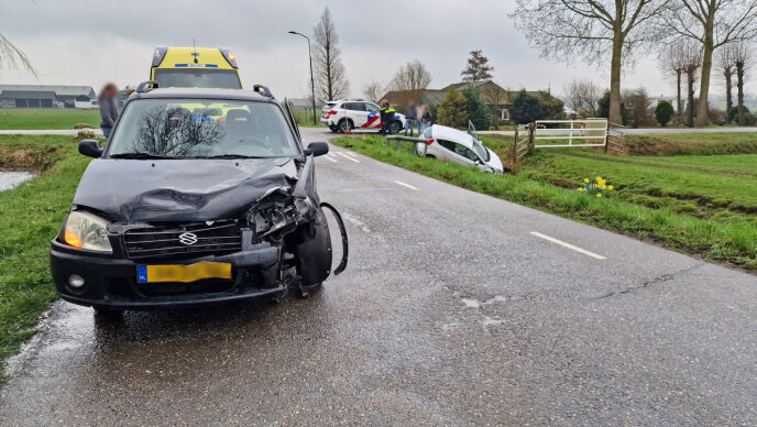 Eén van de auto's eindigde vlak voor de sloot. Ambulancepersoneel heeft de inzittenden nagekeken.